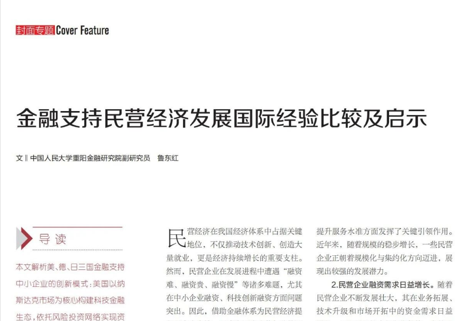 鲁东红:金融支持民营经济发展国际经验比较