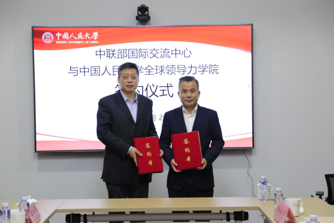 郑新业和姚建国分别代表中国人民大学全球领导力学院与中联部国际交流中心签署合作协议。未来双方将积极发挥各自优势和特色,合作共建“全球南方治国理政英杰班”学历学位项目。