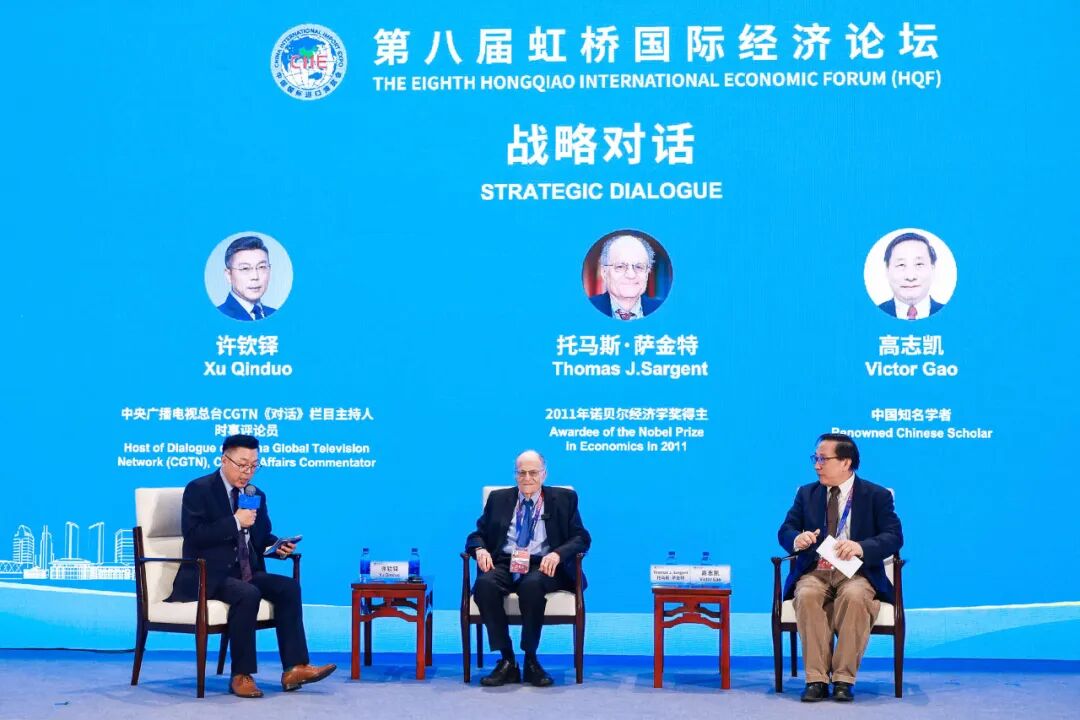 在战略对话环节,2011年诺贝尔经济学奖得主托马斯·萨金特与中国知名学者高志凯围绕分论坛主题进行对话。战略对话环节由中央广播电视总台CGTN《对话》栏目主持人、时事评论员许钦铎主持。