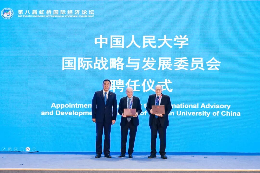 报告发布环节后,中国人民大学国际战略与发展委员会委员聘任仪式举行,中国人民大学党委书记张东刚为2011年诺贝尔经济学奖得主托马斯·萨金特、前英国剑桥大学政治与国际关系高级研究员马丁·雅克颁发聘任证书。2024年10月,中国人民大学成立国际战略与发展委员会,由党委书记张东刚、校长林尚立担任主任委员,先后聘请了斯洛文尼亚前总统达尼洛·图尔克、波兰前副总理兼财政部部长格泽高滋·科勒德克、前英国伦敦经济与商业政策署署长罗思义等全球意见领袖担任委员。