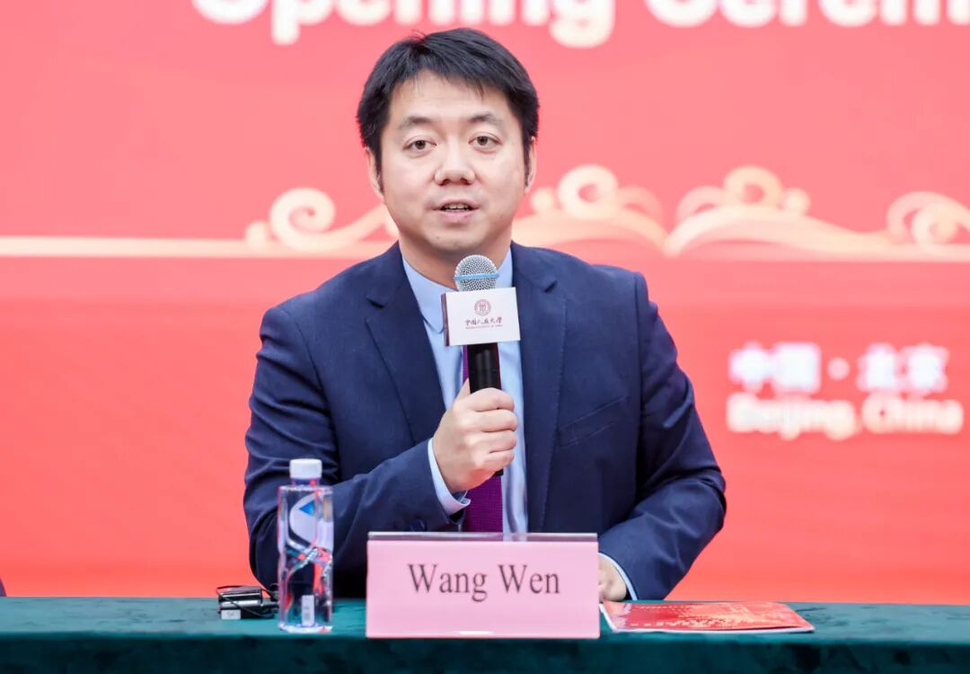 中国人民大学全球领导力学院院长、重阳金融研究院院长王文主持师生代表发言与互动对谈环节。他向同学们提出三点建议:一是作为全球领导力学院的首届新生,希望大家能够珍惜这次难得的学习机会,遵守纪律、用心学习;二是中国是一个治安良好的国家,大家可以安心学习、生活,自由地体验校园内外的文化活动,但需谨记外出报备,学校高度重视每个人的安全与健康,也希望同学们能够对自己负责;三是同学们肩负重要使命,希望大家用心观察和思考中国的发展经验,通过实地考察和课堂学习,完成与本专业相关的论文研究,将来能把在这里所获所得带回自己的国家,为各自国家的发展贡献积极力量。
