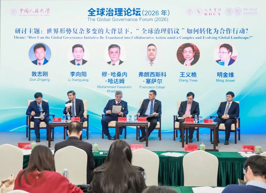 2026年1月24日,“全球治理论坛(2026年)”在中国人民大学举行。本次论坛由中国人民大学主办,中国人民大学区域国别研究院(重阳金融研究院)、全球领导力学院承办,中国人民大学全球治理研究中心协办,外文出版社合办。
