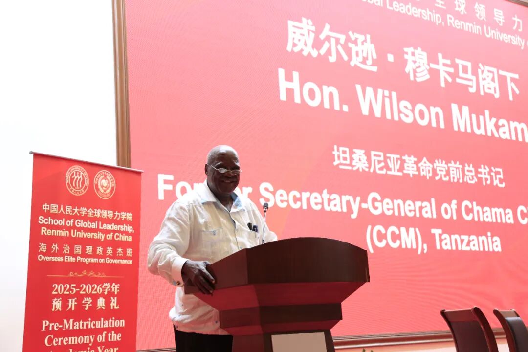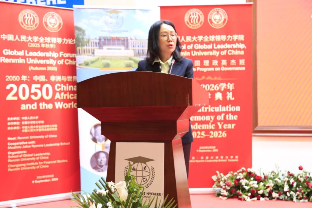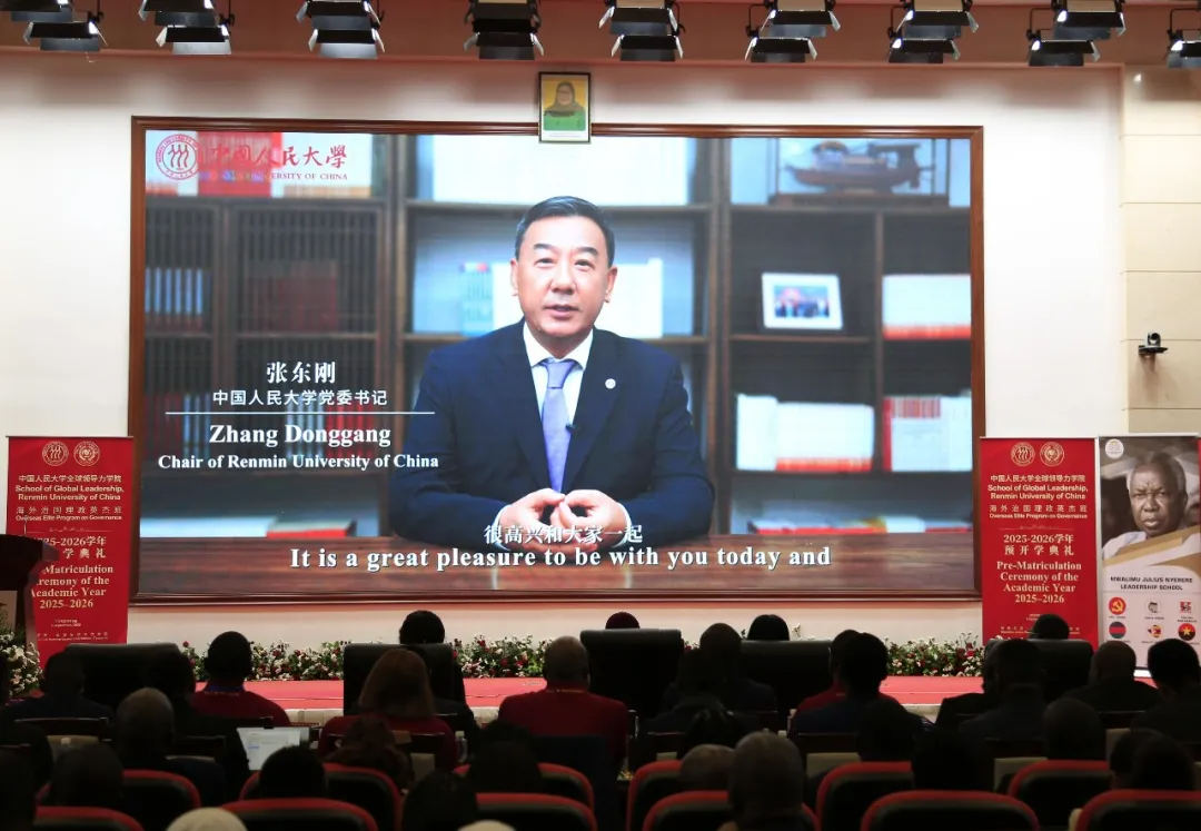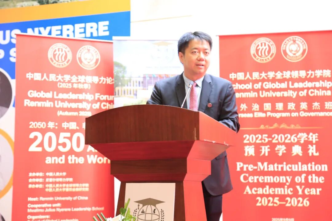 在上午的中国人民大学全球领导力学院2025级“海外治国理政英杰班”预开学典礼上,尼雷尔领导力学院院长马塞琳娜·奇日加,中国人民大学党委书记张东刚、校长林尚立,中国驻坦桑尼亚大使陈明健先后致辞。中国人民大学全球领导力学院院长、重阳金融研究院院长王文主持致辞环节。
